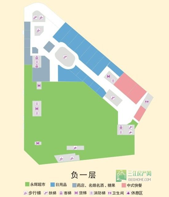 银龙广场地下四层。其中负四层(B4版块)为停车场,负三层(B3版块)除停车场外,还规划有汽车美容区,方便车主生活。负二层(B2版块)、负一层(B1版块)主要为规划15000平米的永辉超市;另外负一层还规划有日用品、药品、名酒名烟、糖果、中式快餐,负二层另规划有礼品店、保健品、雅座茶艺、地方特尔色小吃。从规划看,项目地下的四层可基本满足消费者停车、购物、休闲的基本需求。